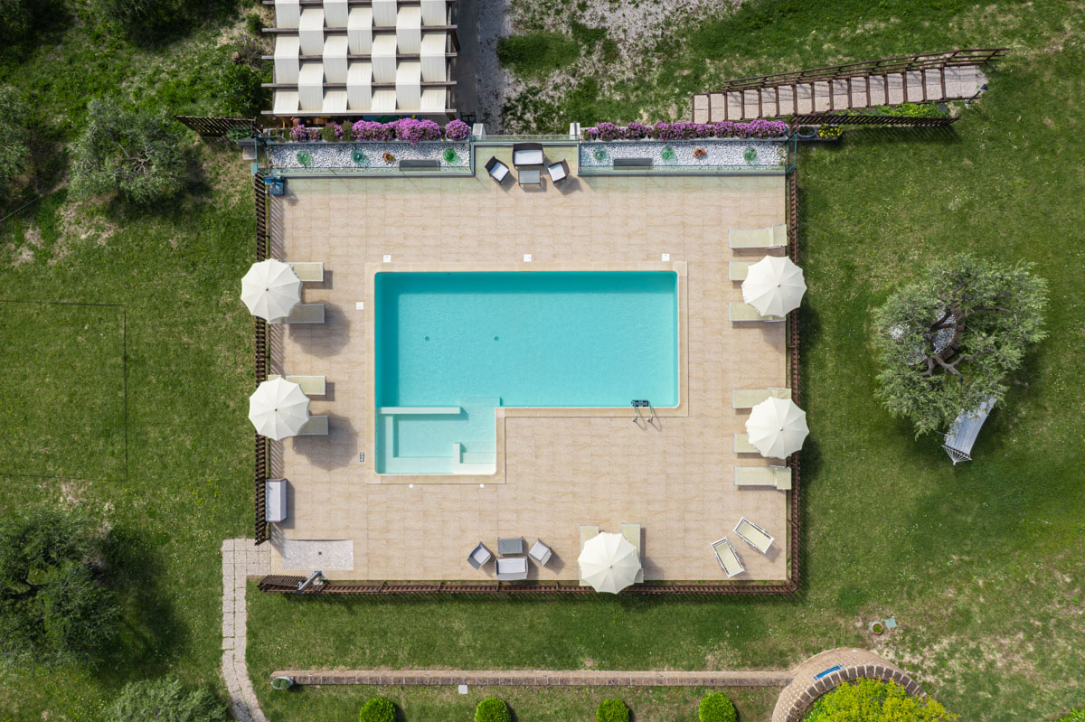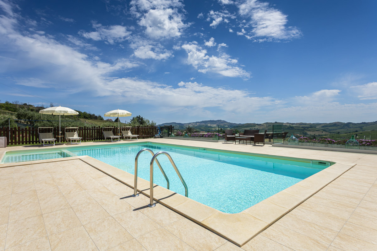 Piscina di 5x10 metri, completamente recintata per la sicurezza di tutti con tre postazioni idromassaggio