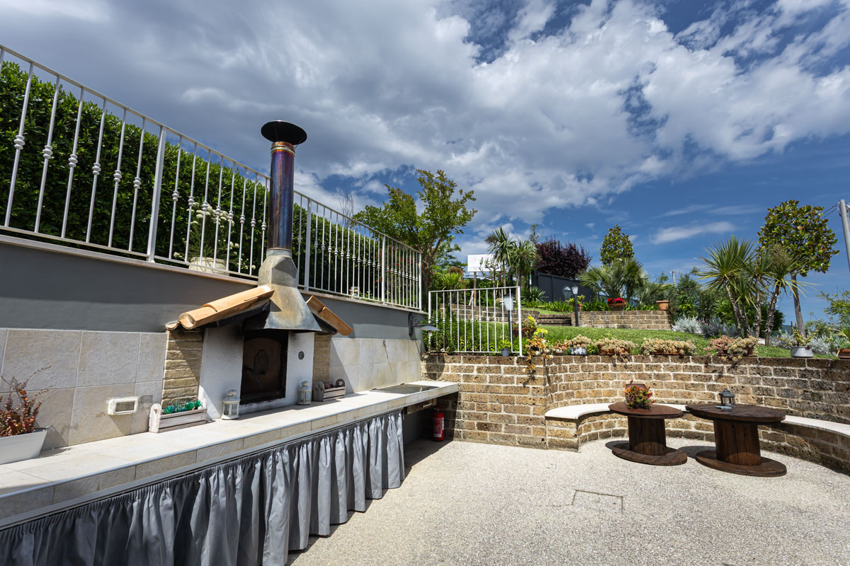 Appartamento a piano terra con accesso sul giardino. L’appartamento ha un porticato privato dove c'è un tavolo da pranzo con 6 sedie per poter mangiare all’aperto, comodi divanetti e una graziosa poltrona a dondolo.